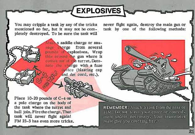 Случилось это в 1973 году, но так и осталось настоящей армейской экзотикой. Теперь противотанковым мячом можно удивлять ценителей военной истории. Если не получается совершить революцию в военной технике, то приходится идти эволюционным путём, совершенствуя уже опробованные решения. Для этого нередко привлекаются совсем не тривиальные идеи. В 70-х годах прошлого столетия военные Соединённых Штатов осознали, что в арсенале отсутствуют средства ближнего боя с танками противника. Особенно это тревожило в случае гипотетического конфликта с Советским Союзом в городских кварталах Западной Европы. Примерно такими комиксами американцев учили бороться с танками. Источник: thedrive.com Простому американскому солдату, помимо габаритного гранатомёта, нечем было поражать советский танк – основного противника сухопутных войск НАТО. Гранатомёт так же не был панацеей от танковой угрозы. Каждый выстрел был шумным и дымным, то есть демаскировал пользователя на поле боя. Кроме этого, у реактивной противотанковой гранаты всё-таки была мёртвая зона поражения, и это серьёзно ограничивало применение в городских условиях. Именно поэтому родилась идея создания компактной противотанковой гранаты, которую можно носить на поясе каждому пехотинцу. Метнуть её вполне возможно незаметно и чуть ли не в упор – главное, вовремя укрыться от ударной волны. Но сама концепция кумулятивной гранаты индивидуального пользования достаточно сложна в исполнении. Во-первых, требуется снабдить её достаточно большой массой взрывчатки, иначе не пробить верхние листы танковой брони, не говоря уже о лобовой и бортовой. Например, советским инженерам в 1950 году пришлось уложить в противотанковую гранату РКГ-3 сразу полкило тротила. Атака близкорасположенного танка такой адской машинкой грозила как минимум контузией, а вполне вероятно, и более тяжёлыми последствиями. И это, уточним, в 1950 году, когда броня танков была несколько слабее и тоньше аналогичной в 70-х. Второй проблемой разработчиков стала ориентация гранаты в полёте относительно поражаемой брони. Кумулятивную гранату не бросишь как осколочную или фугасную – здесь требуется расположить облицованный металлом конус по возможности перпендикулярно броневому листу. В упоминаемой РКГ-3 для этой цели использовался парашют, раскрывающийся в последней фазе полёта гранаты. Это, кстати, несколько увеличивало время подлёта гранаты к цели и повышало шансы бойца укрыться. Как утверждают американские военные аналитики, советские РКГ-3 использовались иракскими партизанами против легкобронированной техники войск коалиции. Граната оказалась ожидаемо эффективной против знаменитых HMMWV и тяжёлых MRAP. Всё-таки 500 грамм тротила в кумулятивном исполнении – серьёзное оружие в руках повстанца. Отечественная РКГ-3. Источник: vk.com С учётом всех выявленных проблем, инженеры Абердинского полигона предложили в 1973 году использовать для гранаты форм-фактор мяча для американского футбола. До этого рядовые пехотинцы США чем только не пользовались, пытаясь уничтожить танки: в ход шли связки тротиловых шашек, коктейли Молотова и другое нехитрое оружие. Типично американское оружие Разработанную армейской лабораторией наземных вооружений гранату, созданную из футбольного мяча, можно было по праву назвать национальным американским оружие
