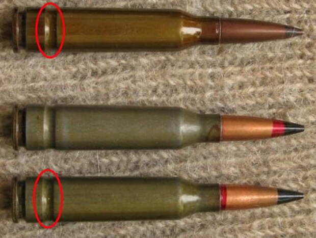 В конструкции патрона есть одна интересная деталь - небольшая бороздка в нижней части гильзы. Благодаря ней патрон получает противодействие растяжению металла, возникающего из-за повышенного давления газов и так же служит для надежной экстракции гильзы.