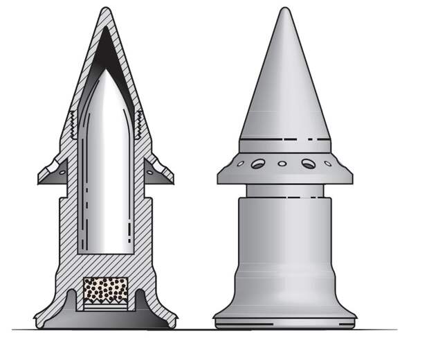 Гораздо интересней был другой путь решения задачи — при сохранении калибра и массы снаряда разогнать его побыстрее. Было придумано много разнообразных вариантов, но настоящим шедевром инженерной мысли оказались противотанковые пушки с коническим каналом ствола. Их стволы состояли из нескольких чередующихся конических и цилиндрических участков, а снаряды имели специальную конструкцию ведущей части, допускающую уменьшение ее диаметра по мере продвижения снаряда по каналу. Таким образом обеспечивалось наиболее полное использование давления пороховых газов на дно снаряда за счет уменьшения площади его поперечного сечения.