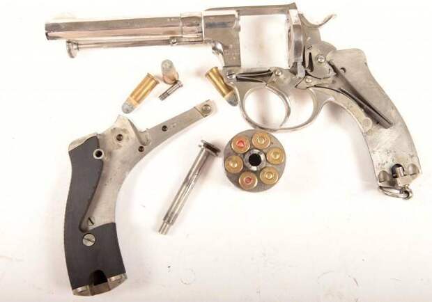 «Наган» 1878 г. в разобранном виде и патроны к нему