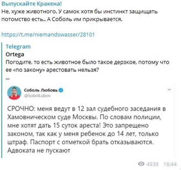 Но получить депутатский мандат очень хотелось. Тогда Соболь решила особо не заморачиваться - и попросту «нарисовала» себе нужное количество подписей. Причём в её подписных листах были обнаружены автографы давно умерших людей. Казалось бы – пора признать свою недобросовестность и тихонечко уйти в тень. Но нет: под руководством «шефа» - блогера Алексея Навального - Соболь зазывает москвичей на незаконные шабашы, пытаясь привлечь к себе внимание.Но и здесь блондинка не гнушается действовать грязно: она намеренно устраивает провокации, а затем прикрывается собственной дочерью, чтобы избежать ареста.