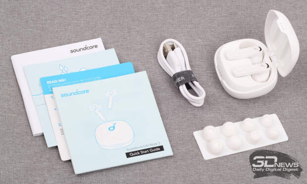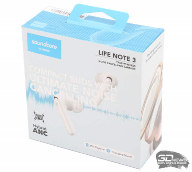 Не столько за довольно приличный размер, сколько за графеновую мембрану, которая и преобразует электрический сигнал в звук. В данной конструкции отсутствует катушка и магнит, а сама мембрана натягивается между кремниевыми электродами. Именно применение графеновых излучателей позволило сделать наушники достаточно компактными, несмотря на приличный диаметр мембраны. К достоинствам графенового излучателя относится очень высокий КПД: потери энергии, уходящей в тепло, практически отсутствуют, почти вся она преобразуется в звуковые волны. Ну и ещё одно достоинство – это высокая точность передачи звука. Как с этим обстоят дела у Soundcore Life Note 3 NC, мы посмотрим при тестировании. Пока же отметим, что наушники выделяются ещё и применением фирменной технологи BassUp, которая должна обеспечивать насыщенное звучание низких частот.К источнику звука наушники подключаются при помощи встроенного модуля Bluetooth 5.0 с использованием кодеков SBC и AAC. Ну и конечно, не обошлось без системы активного шумоподавления с несколькими режимами работы, включая режимы аудиопрозрачности. Для работы этой системы в каждый из наушников встроены по три микрофона, которые служат как для захвата звуков окружающего мира, так и для точной передачи речи без посторонних шумов. Как и другие TWS-наушники, модель Soundcore Life Note 3 NC можно использовать в качестве гарнитуры для телефонных разговоров или ведения прямых онлайн-трансляций. Управление звонками и воспроизведением у новинки сенсорное.