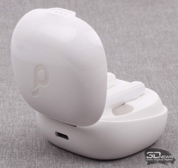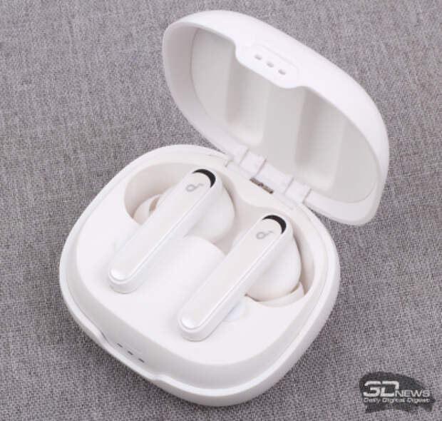 Футляр для хранения и зарядки из комплекта поставки вызывает уважение своим интересным дизайном. Традиционно все производители делают его таким образом, чтобы наушники устанавливались внутрь вертикально. В Anker решили, что это банально. Куда интереснее сделать футляр с горизонтальным размещением наушников. Одной рукой его, правда, не откроешь, но в целом пользоваться таким футляром мне было удобно.