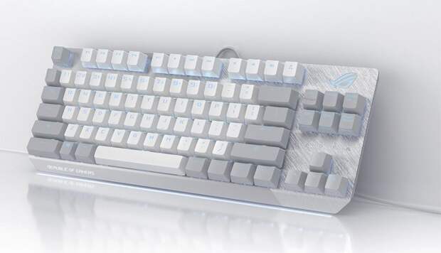 Клавиатура ROG Strix Scope NX TKL Moonlight White имеет компактное исполнение: она лишена блока цифровых кнопок в правой части.