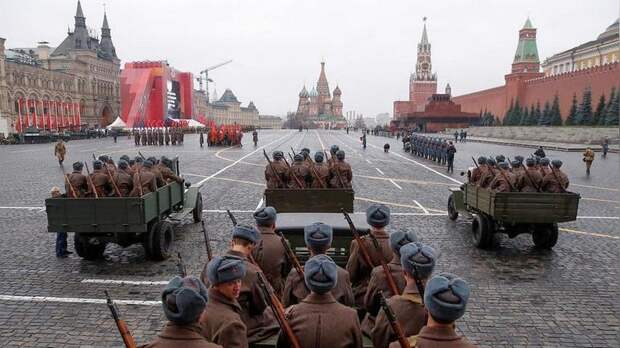 На Красной площади в Москве состоялась генеральная репетиция исторической реконструкции парада 7 ноября 1941 года, с которого войска Красной армии уходили прямо на фронт, чтобы остановить рвущиеся к столице силы гитлеровской Германии. В репетиции были задействованы более трёх тысяч военнослужащих, кадетов и суворовцев, а также легендарная военная техника тех времён, передаёт Euronews. Москва готовится отметить 78-летие ноябрьского военного парада 1941 года. Во вторник состоялась генеральная репетиция на Красной площади. Более трёх тысяч военнослужащих, кадетов и суворовцев в форме времён Второй мировой войны прошли по Красной площади российской столицы в рамках реконструкции исторического события.