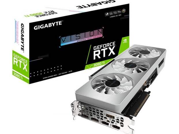 Серия видеокарт Gigabyte Vision отличается строгим внешним видом. Модели Gigabyte GeForce RTX 3080 Ti и GeForce RTX 3070 Ti в данном исполнении не стали исключением. Для них производитель тоже предлагает заводской разгон. Частота GPU старшей версии составляет 1830 МГц, графический процессор младшей версии разогнан до 1710 МГц.